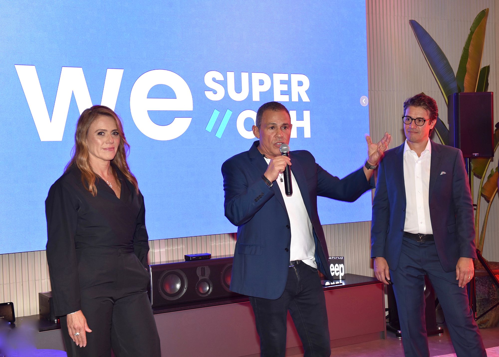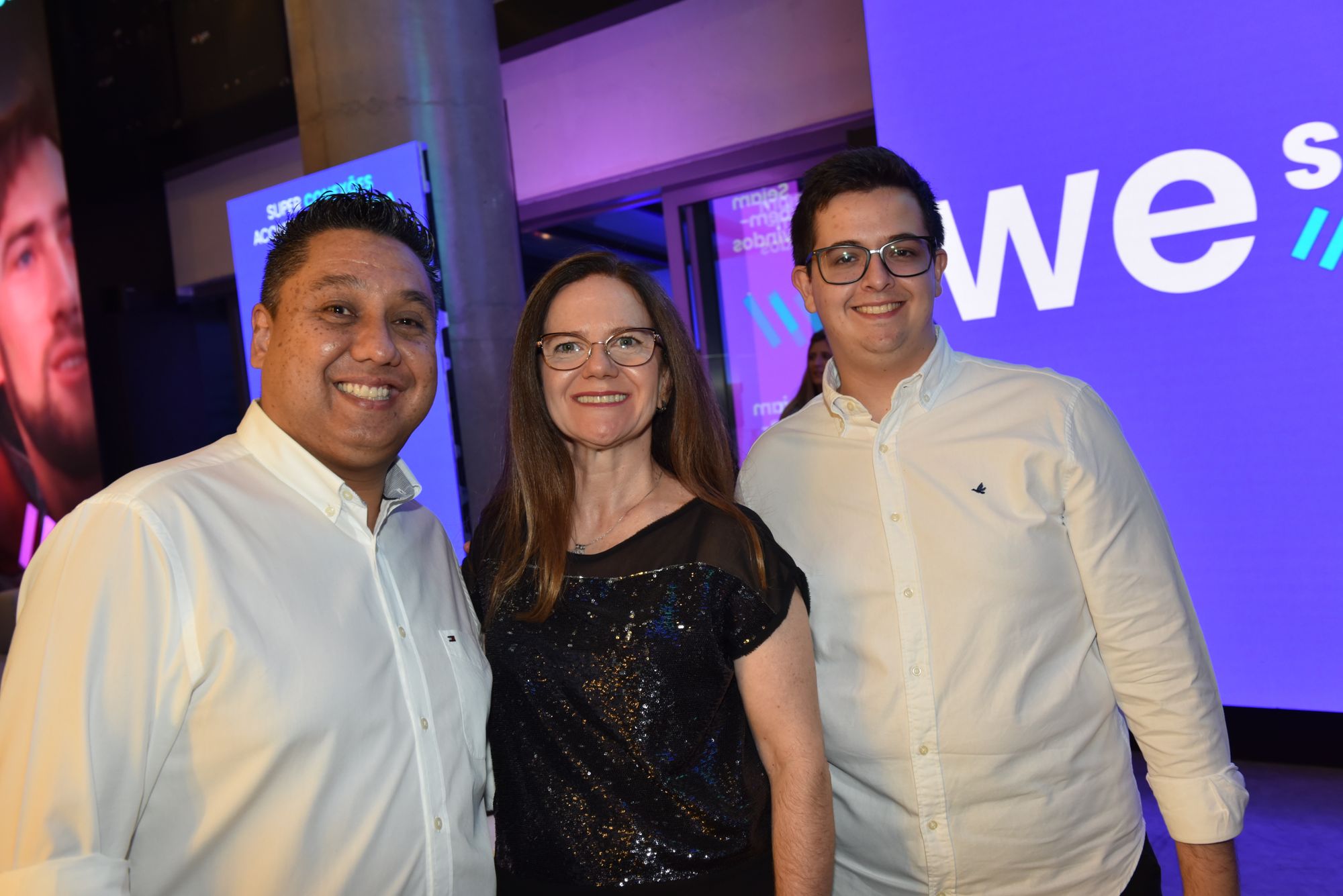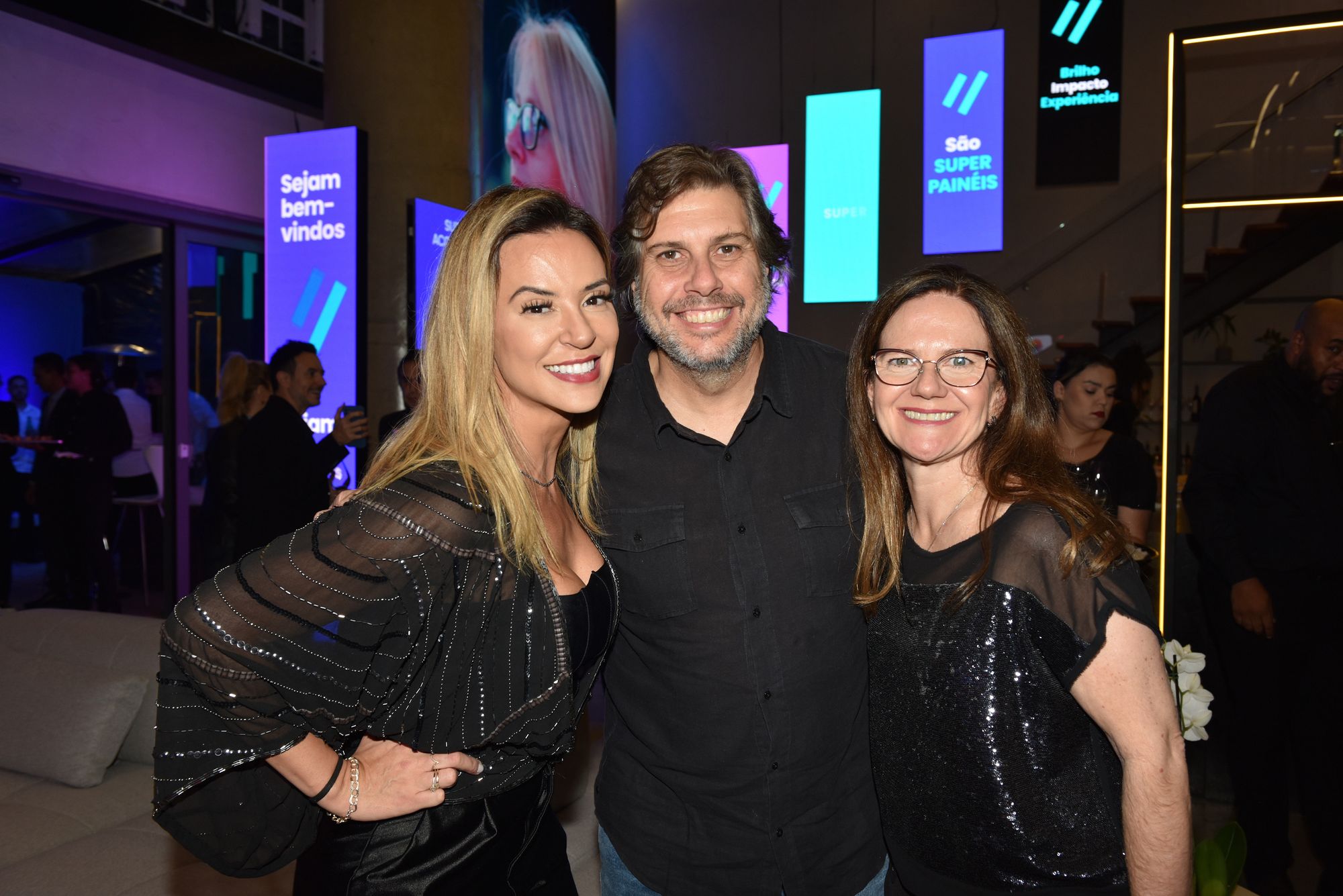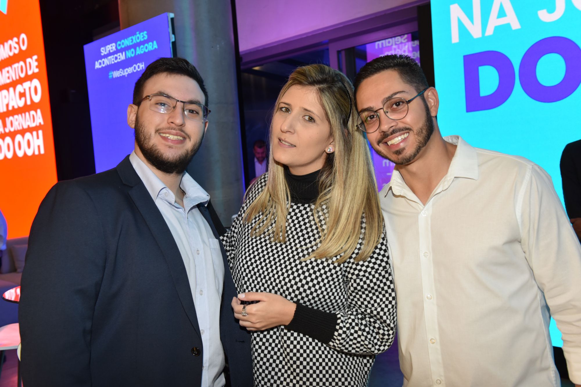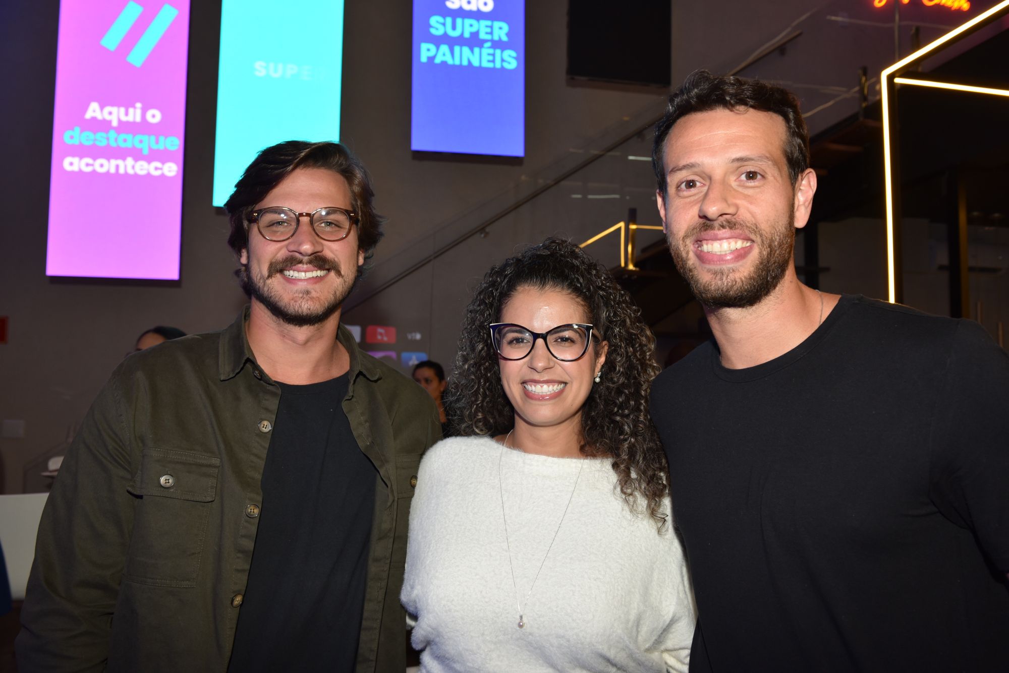 Angelo de Sá Jr., diretor-comercial, entre Izabella Esper, sócia grupo We Super OOH, e Led Wave, e Tiago Brito, CEO do grupo WE Super OOH e Led Wave