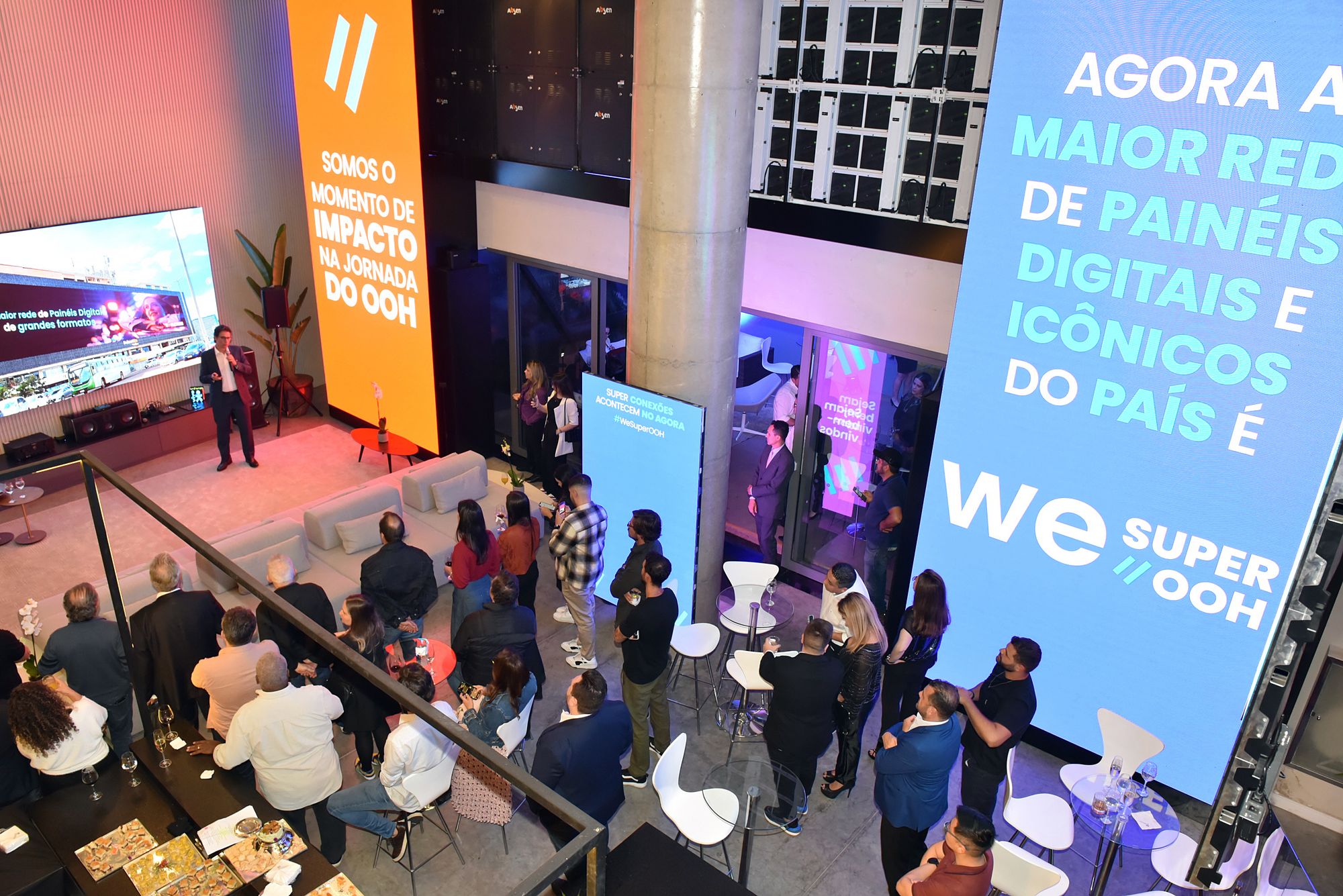 A WE Super OOH reuniu clientes, amigos e profissionais do mercado, para se apresentar como o maior veículo de mídia DOOH em painéis de grande formato (billboard digital) no Brasil. Presente em todas as regiões do país, com centenas de painéis digitais instalados em pontos estratégicos, impulsionada por tecnologia de ponta, a WE Super OOH foca em inovação contínua, e promete trabalhar para levar a experiência do DOOH mais longe, promovendo os melhores resultados aos seus anunciantes.